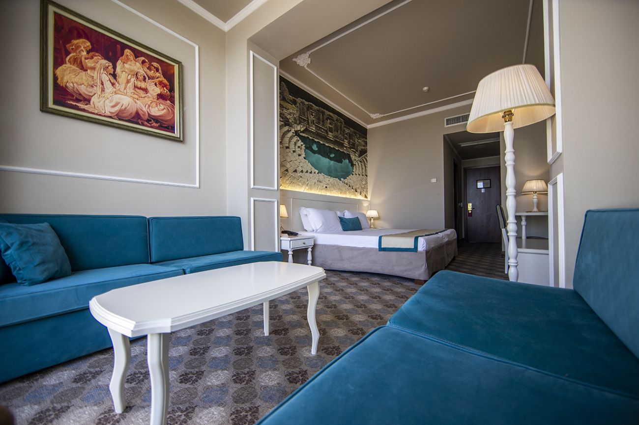 Хотелът разполага с общо 70 стаи, разположени в основна четириетажна сграда - 25 стандартни стаи, 26 супериор, 13 екзекютив стаи и 6 суита. Всички стаи са оборудвани с климатик, телевизор, телефон, баня с душ или вана, сешоар, минибар (платен), сейф.