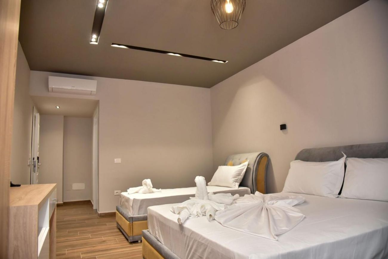 Хотелът разполага с Делукс стаи (някои с гледка море) и апартаменти с гледка море. Всички стаи са оборудвани с климатик, телевизор, телефон, баня с душ, сешоар, безплатен Wi-Fi.